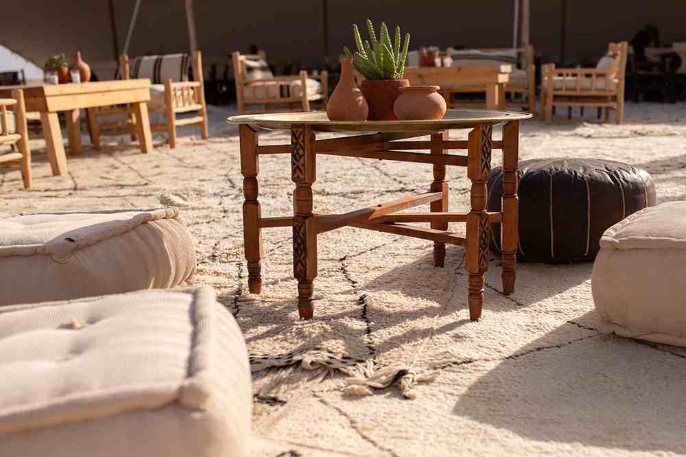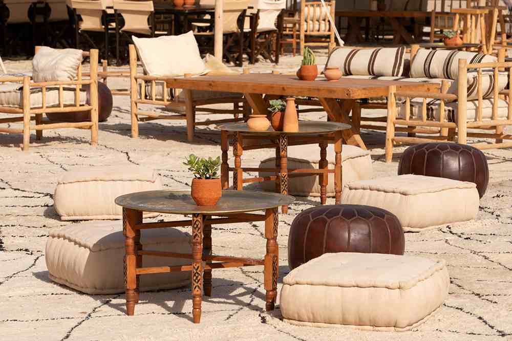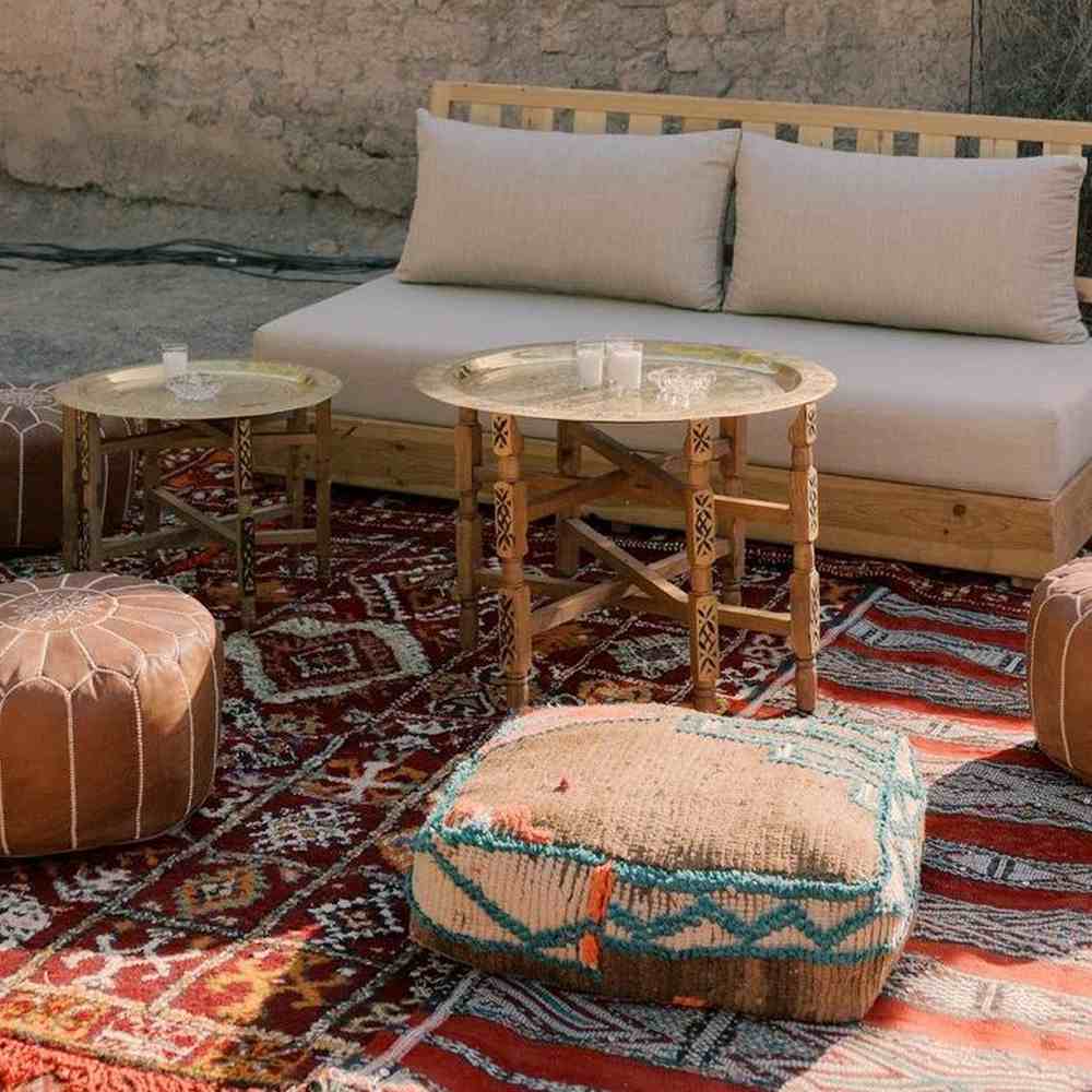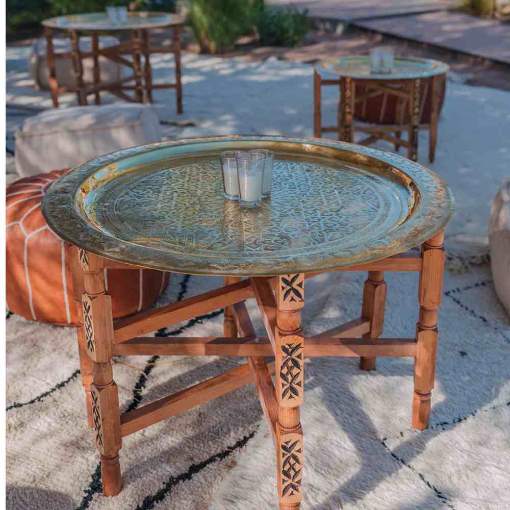 Apportez une touche d’élégance artisanale à vos espaces éphémères avec la table basse petite au plateau en laiton et pied en ciseau. Avec un diamètre de 60 cm, une profondeur de 45 cm, et une hauteur bien proportionnée, elle est parfaite comme table d’appoint ou pour accompagner un coin salon raffiné.